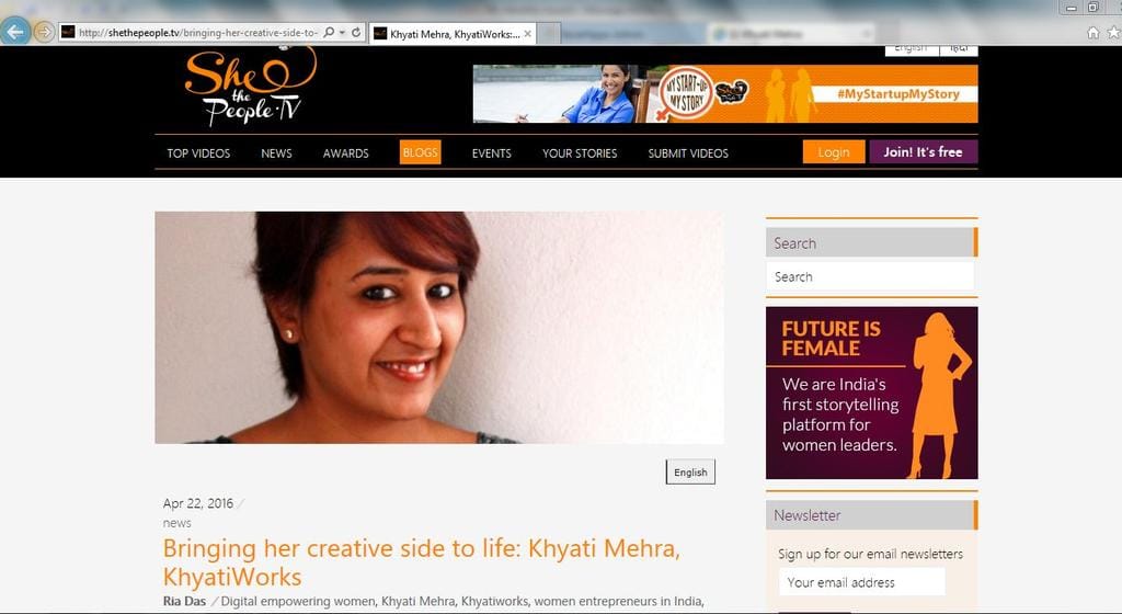 22nd April 2016 - Khyati featured on Shethepeople.tv!