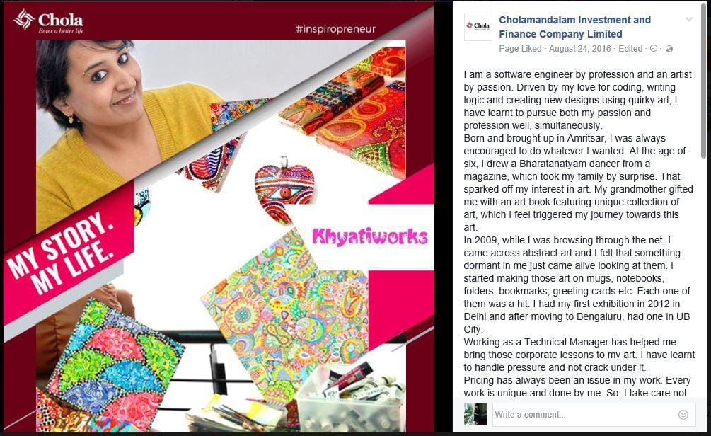 24th August 2016 - Khyatiworks Journey featured in MyStoryMyLife from Cholamandalam Investment and Finance Company Limited