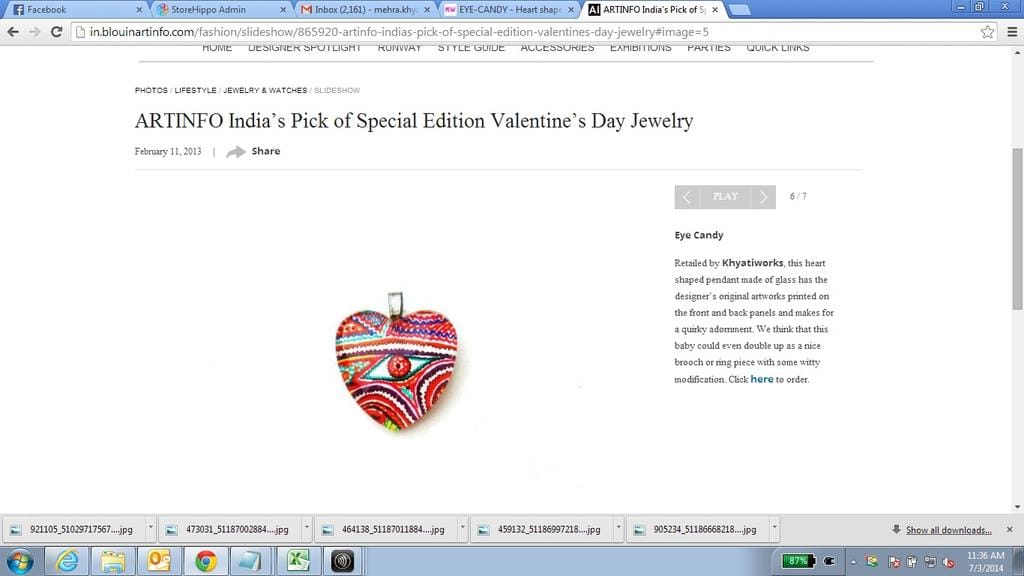 11th Feb 2013 - Khyatiworks' 'Eye-Candy' is selected by Blouin Artinfo India as it's Pick of Special Edition Valentine’s Day Jewelry!