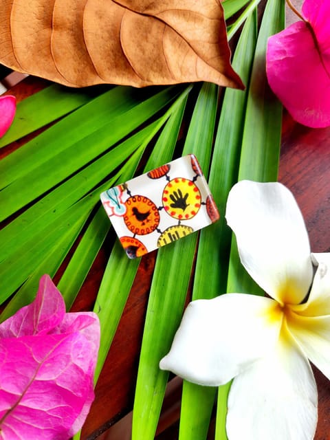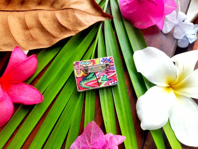This is a beautiful transparent Glass Tile brooch where in a thick glass tile is attached to a section of my Original Artwork and then sealed.