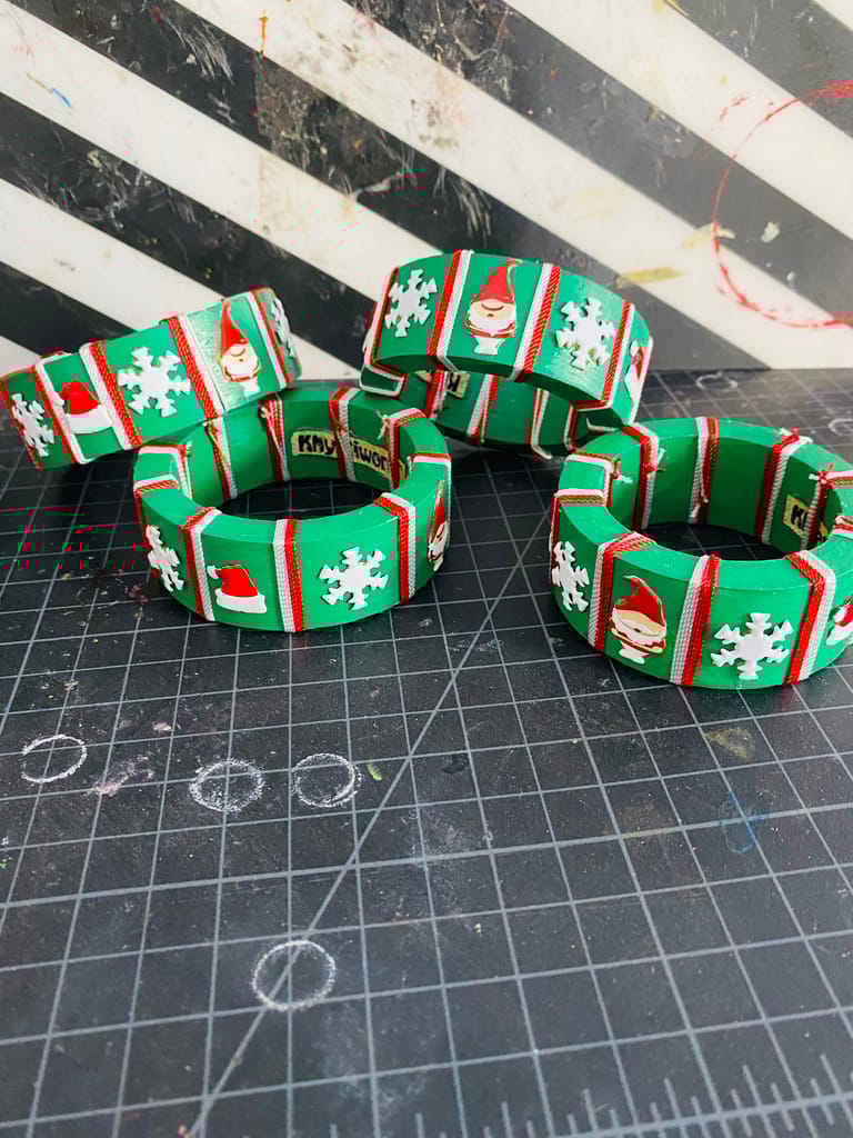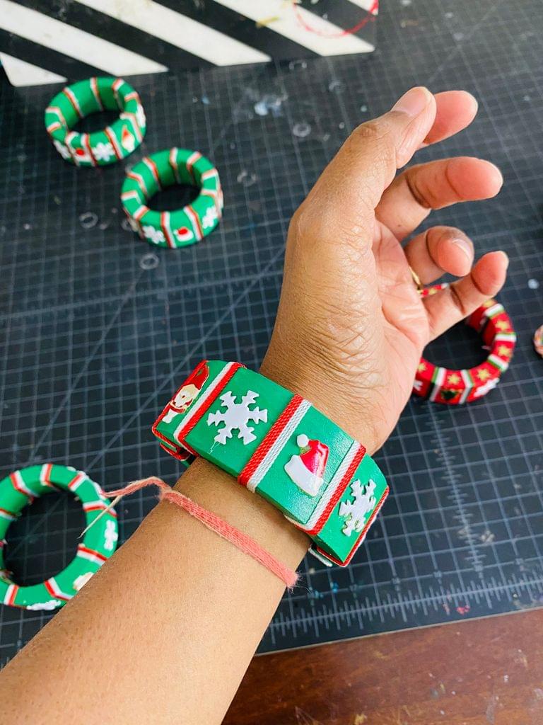 These are 1 inch thick wooden bangles that have been handpainted and embellished with threads and metal charms. Perfect for the Christmas festivities!