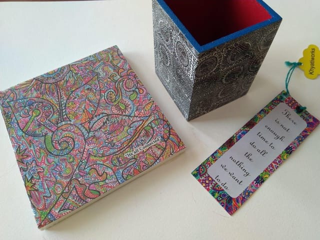 KHYCOM13Excellent festive gift combos for your near and dear ones. This combo includes 1 notebook, 1 utility holder and 1 bookmark. They look amazing when placed together.