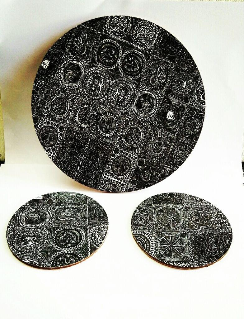 Read MoreKhyatiwork’s homeware can be identified easily in a crowd. Owing to Khyati’s psychedelic artwork, and its unique way in which product is created, this set is decoupaged with ILLU-Gination artwork and has a cork base.
