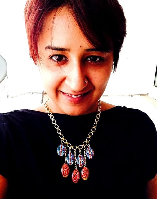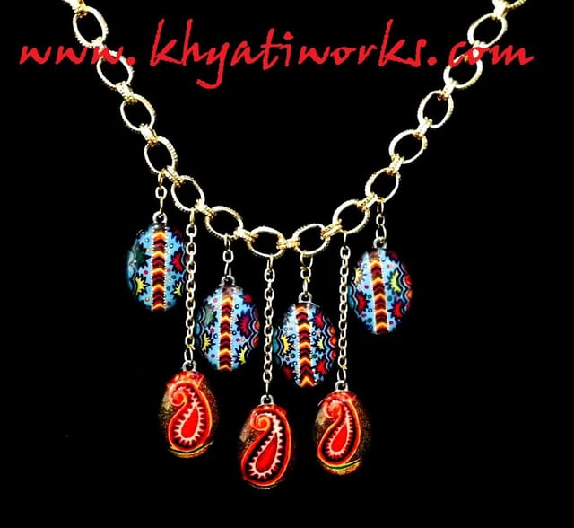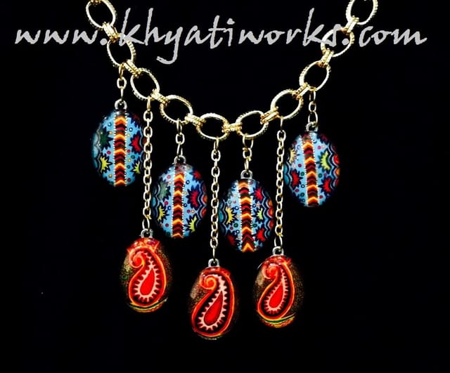 Its a beautiful handcrafted necklace made of my Artwork miniatures in a chunky golden chain! Mesmerizing ain't it?