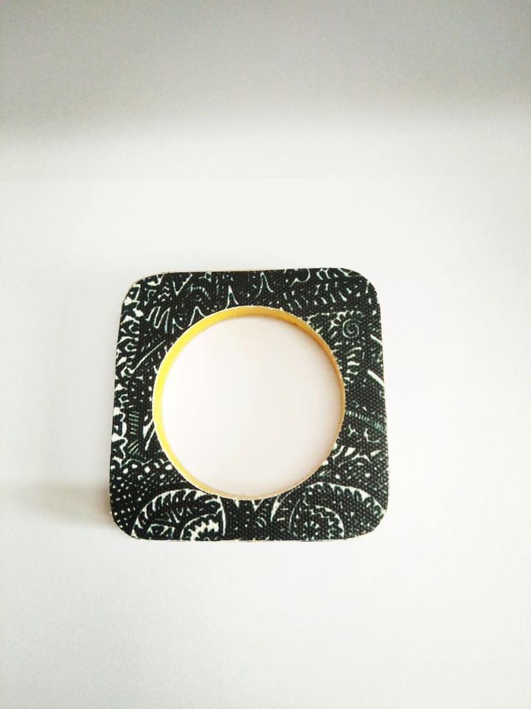 These square wooden bangles are painted with acrylic paints and then varnished. Each bangle is adorned with strip of psychedelic artwork printed canvas and made more attractive with different patterns in bright colors. Wear them with your favou...