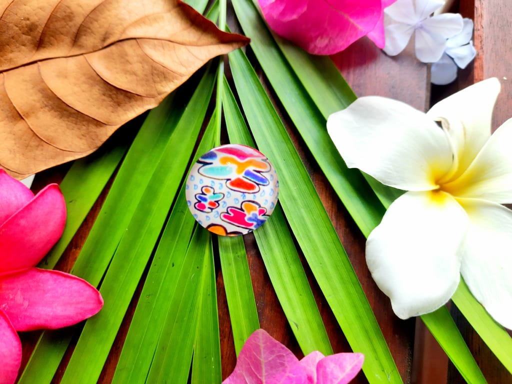 Read MoreThis is a beautiful transparent Glass Tile brooch where in a thick glass tile is attached to a section of my Original Artwork and then sealed.
